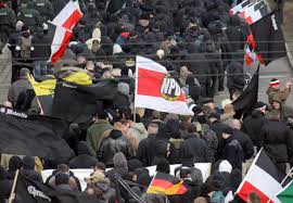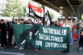 Integrantes del movimiento neonazi marchan de nuevo por las calles principales de Alemania. La marcha celebró la fundación a finales de la semana pasada de un nuevo partido de extrema derecha llamado Los derechos.