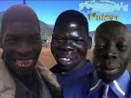 Un rasgo de la mandíbula inferior de los Negros es que conserva un vestigio del símiesco, una región huesuda inmediatamente detrás de los incisivos. El anaquel símico es una característica distintiva de los monos, y está ausente en los Blancos. Los Negros también tienen dientes más grandes que los Blancos.